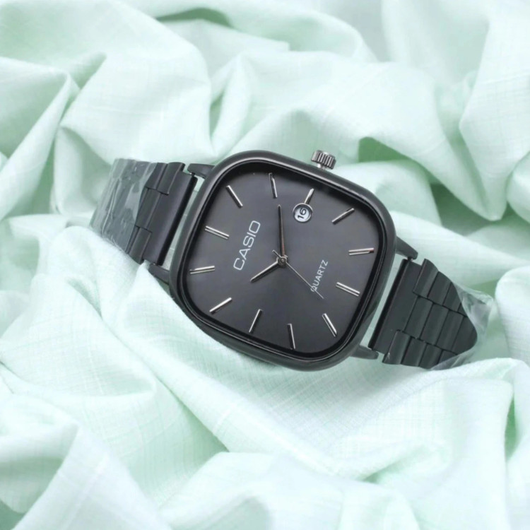 کاسیو الدمانی طرح مربعی موتور تاریخدار. رنگ:بند مشکی رنگ ثابت و خود ساعت سبز ساعت دارای تقویم میباشد جنس بدنه:استیل رنگ بندی بیشتر در سایت موجود است